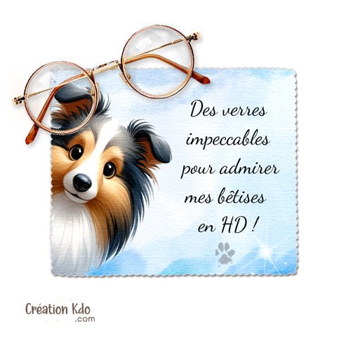 Essuie-lunette Berger des Shetland Chiffonnette microfibre humour admirer mes bêtises en HD
