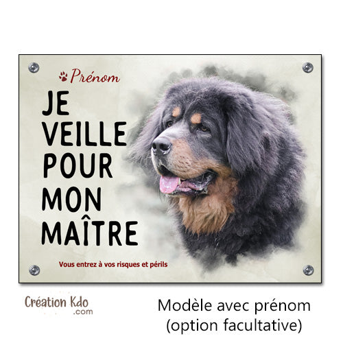 Panneau Attention Dogue du Tibet Je veille pour mon maître